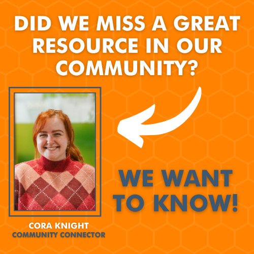 Did we miss a great resource in our community? Contact Cora Knight, Community Connector to let us know!