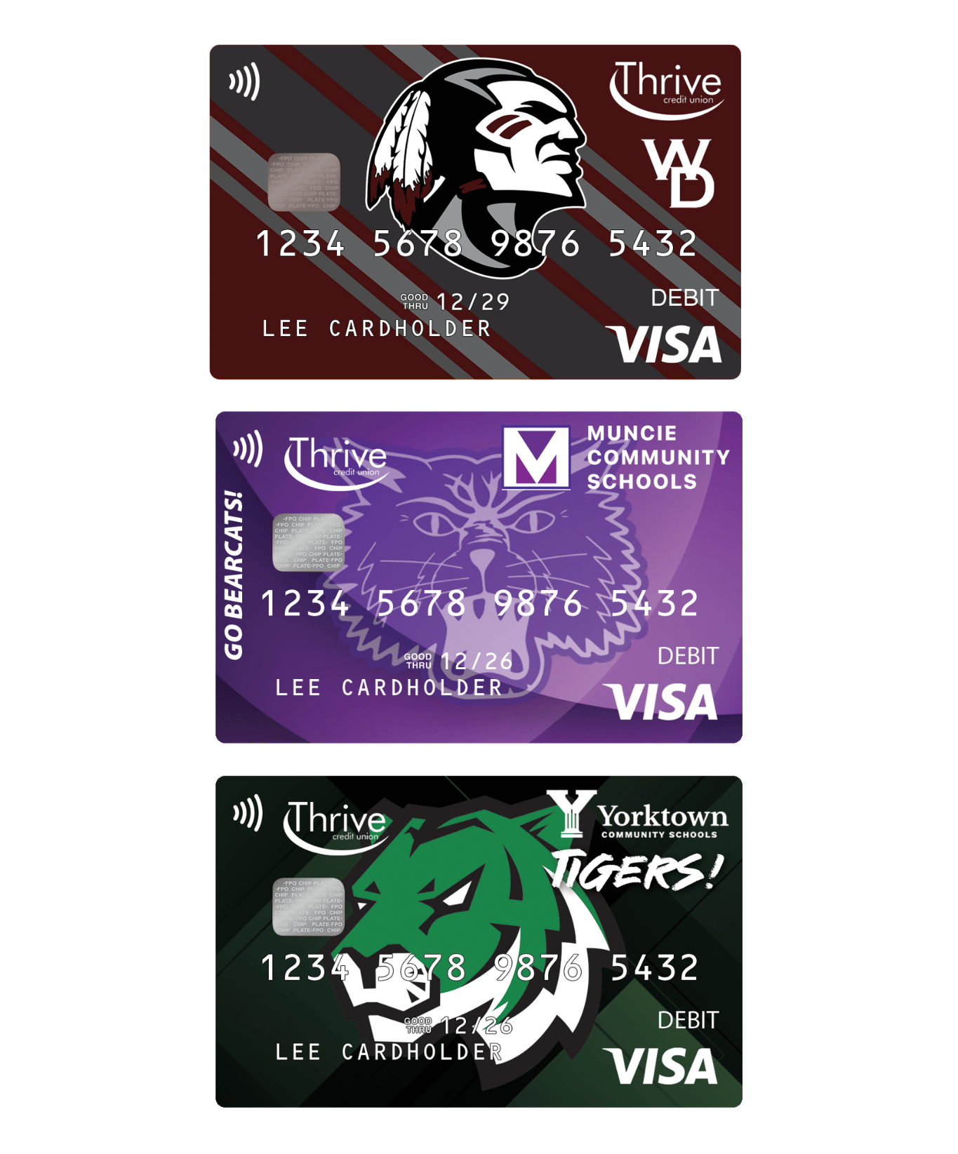 Show off your school spirit every time you use your Thrive school spirit debit card! Plus, all the benefits of having your checking account at Thrive!